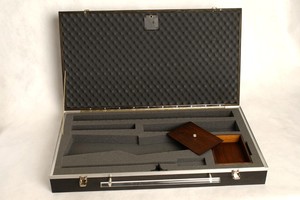 - Die Waffenkoffer bestehen aus 10 mm starkem Sperrholz, werden in Eiche furniert und in Teak gebeizt.